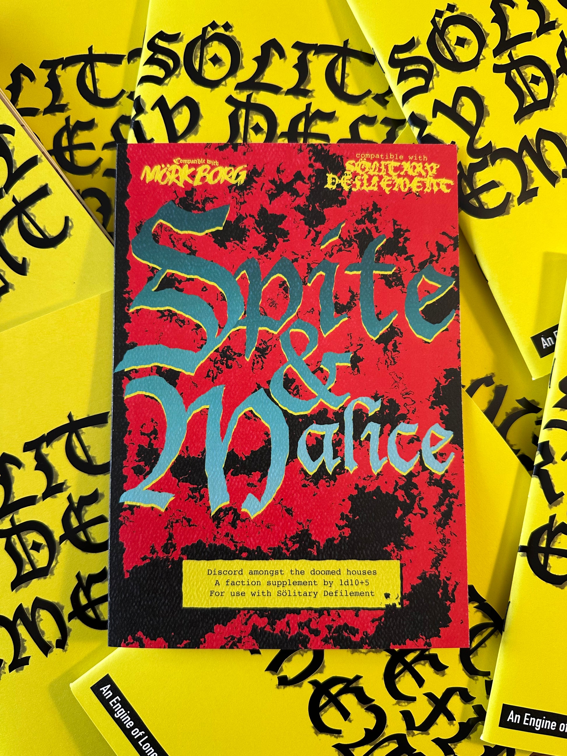 - Spite & Malice: supplementary faction pamphlet with goal progression (first time in print!)