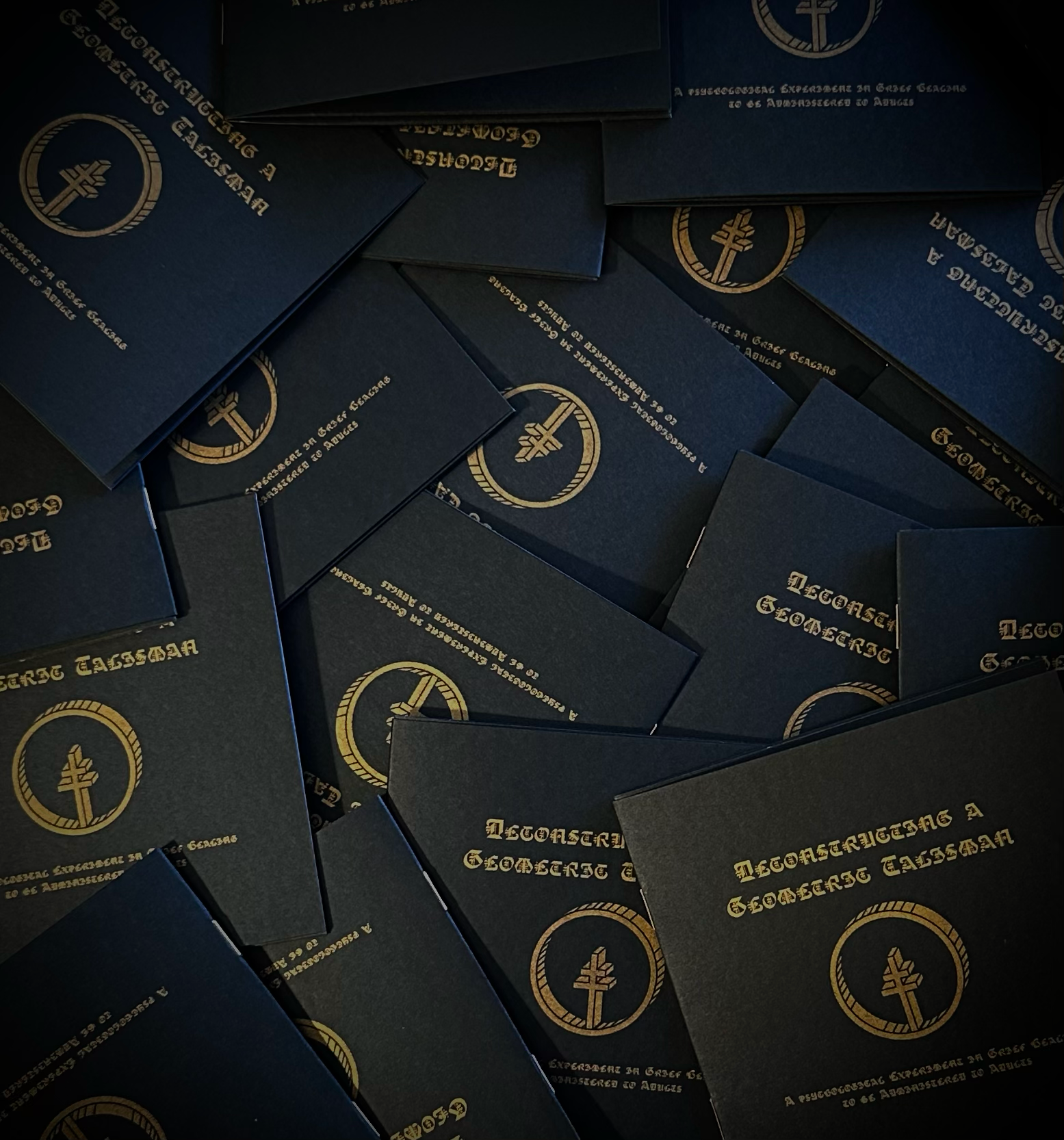 Deconstruction a Geometric Talisman: A Psychological Experiment in Grief Healing to be Administered to Adults is an unapologetic toying with occult principles and humor while I was experiencing loss. The resulting product is a thoughtful inside joke between me and death that is as grave as it is tongue in cheek.