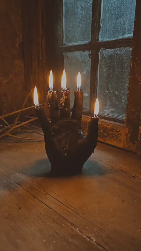 Hand of Glory Candle handmade by Mithras Candle with black beeswax and ethically sourced tallow. Maximum burn time is estimated at 3-hours.