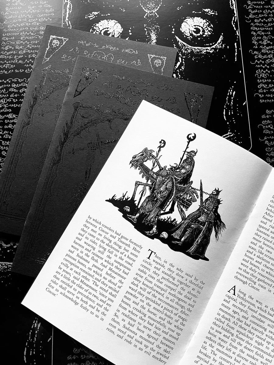 Includes a foil cover saddle stitched copy of the Clark Ashton Smith short story, The Empire of the Necromancers