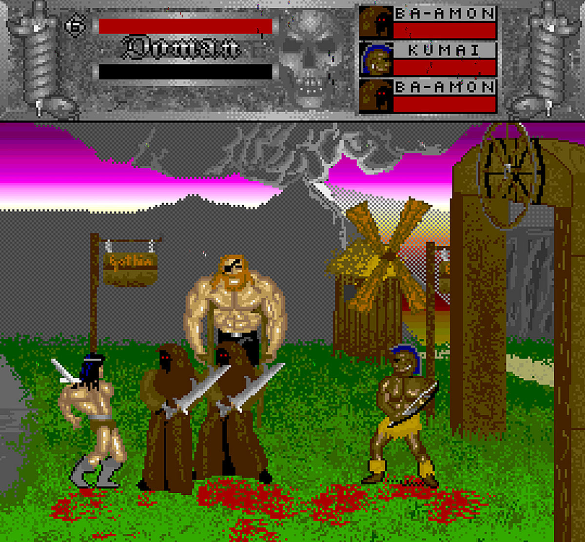 Doman was a cross between the most famous video games Barbarian, Rastan Saga and Golden Axe, but with a much higher dose of blood and brutality that made it unique: severed heads and limbs, hanging corpses, tortured bodies... rivers of blood flow throughout the game making everything very disturbing and splatter. There was an option to deactivate the "brutality" for a less "gore" experience.