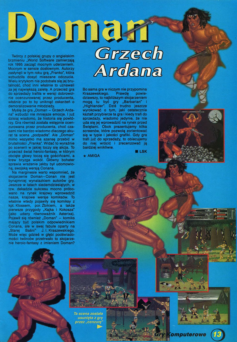 After the release of the incredible beat'em up game "FRANKO - The Crazy Revenge", the creators of the Szczecin studio World Software released another video game for the Commodore Amiga that would become a cult: "DOMAN - Grzechy Ardana" (son of Ardan).