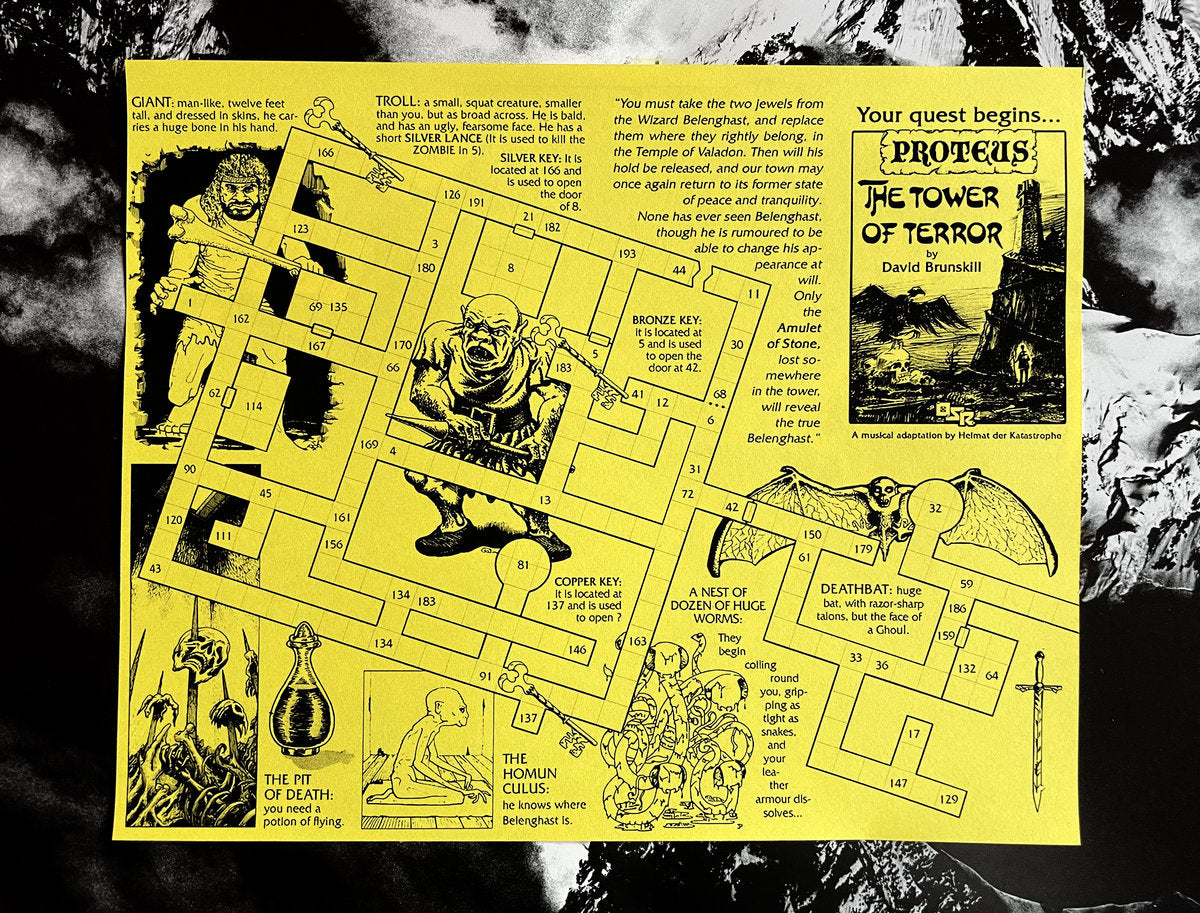 PROTEUS's adventures weren't masterpieces, but they were fun and damn difficult: there were often dozens of objects to necessarily find to complete the quest and defeat the final monster, and most of the time the decisive one was missing; furthermore, it was essential to draw maps ogf the dungeons in order not to get lost in the paragraphs, but these maps often... did not add up.