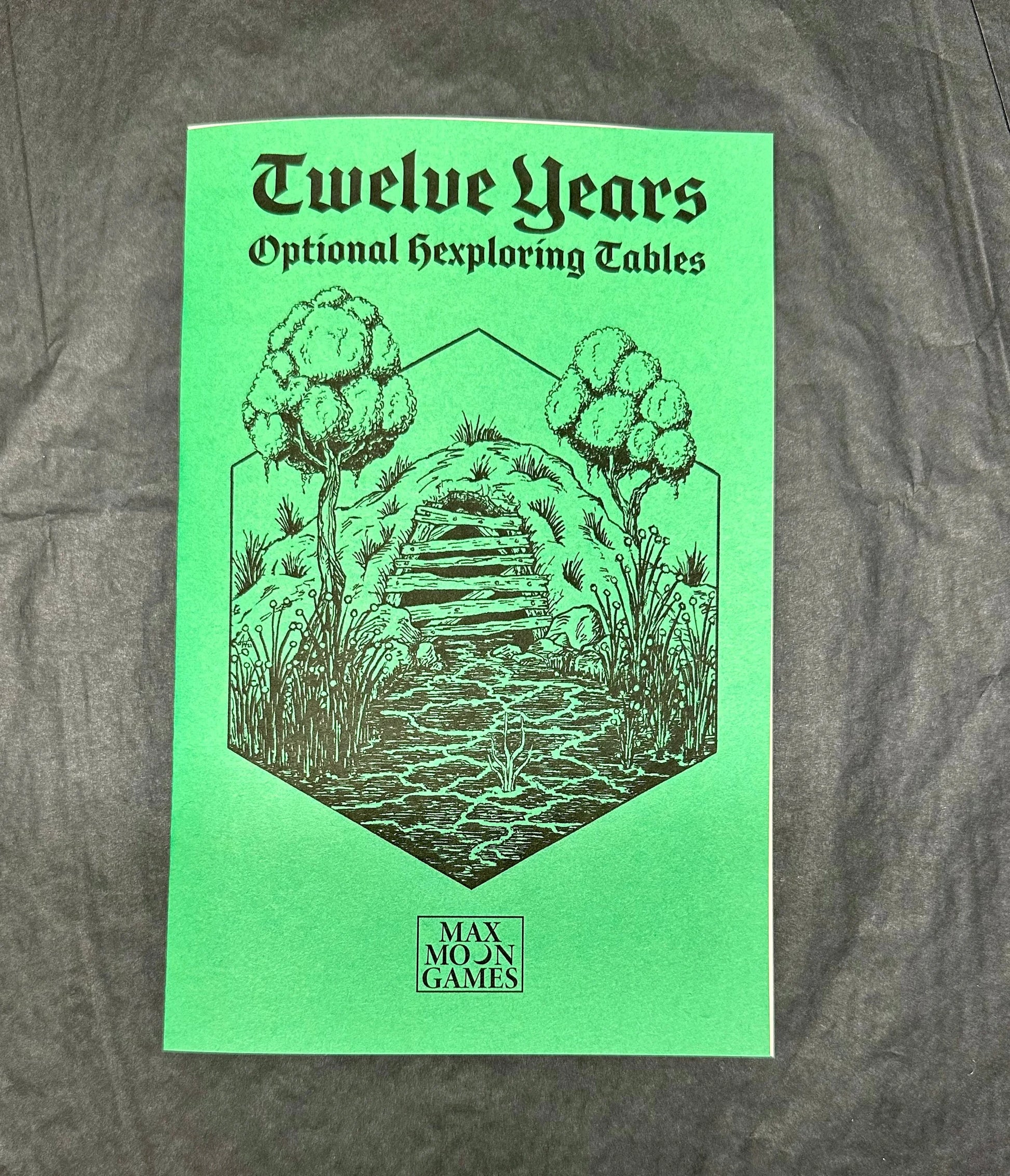New monsters and encounter tables to bring more variety to your Twelve Years games! This 8 page zine adds terrain-specific encounter and creature tables so that marshes, hills, and forests have their own possibilities!