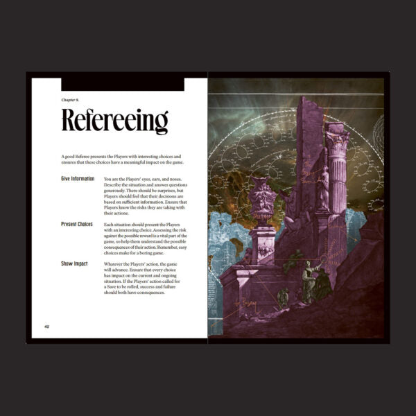 Written by Chris McDowall (Electric Bastionland) and with graphic design by Johan Nohr (MÖRK BORG), it is published by the Free League Workshop, our sub-label for carefully selected externally developed games. The full-color books has 144 pages in digest format.