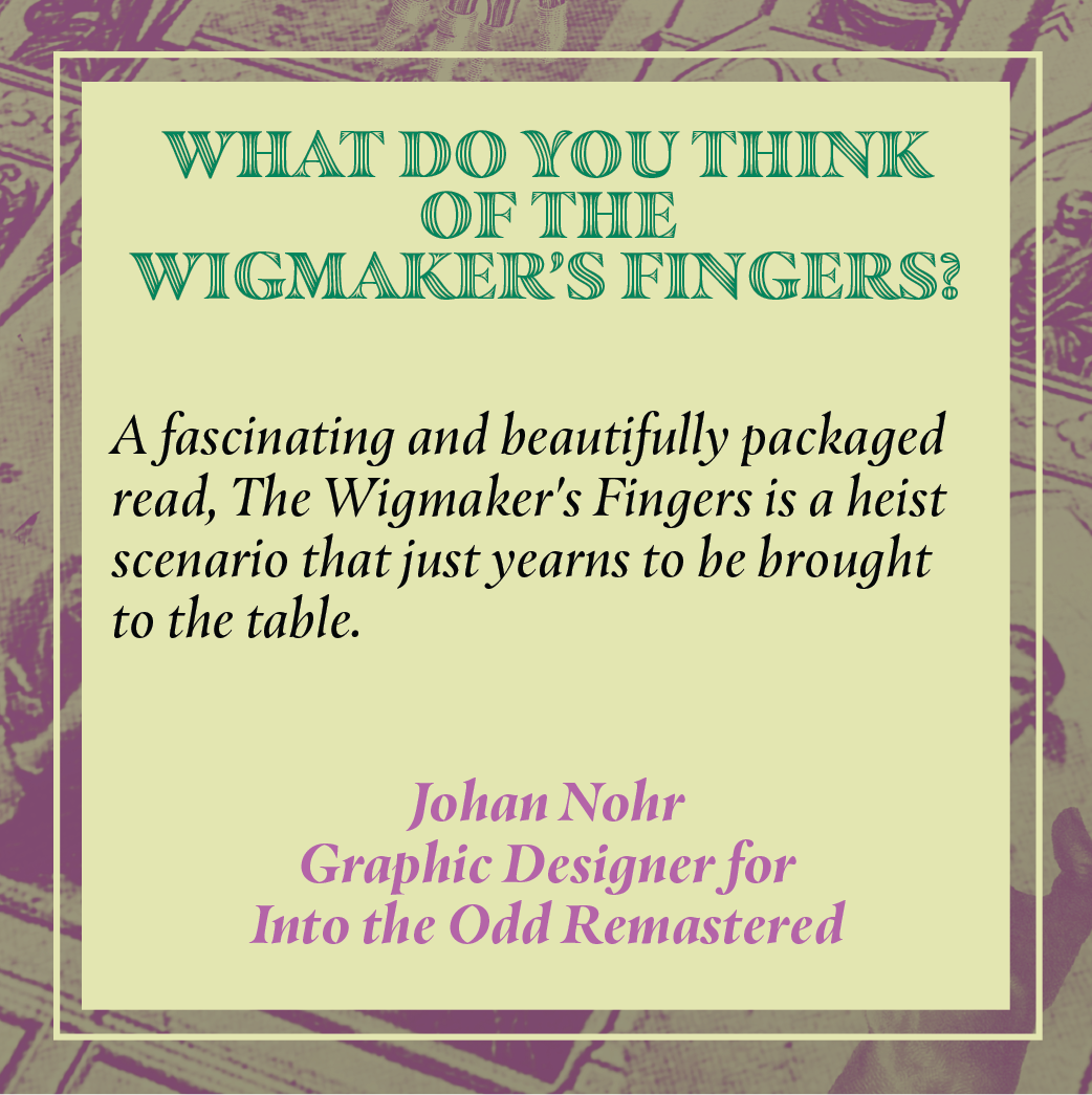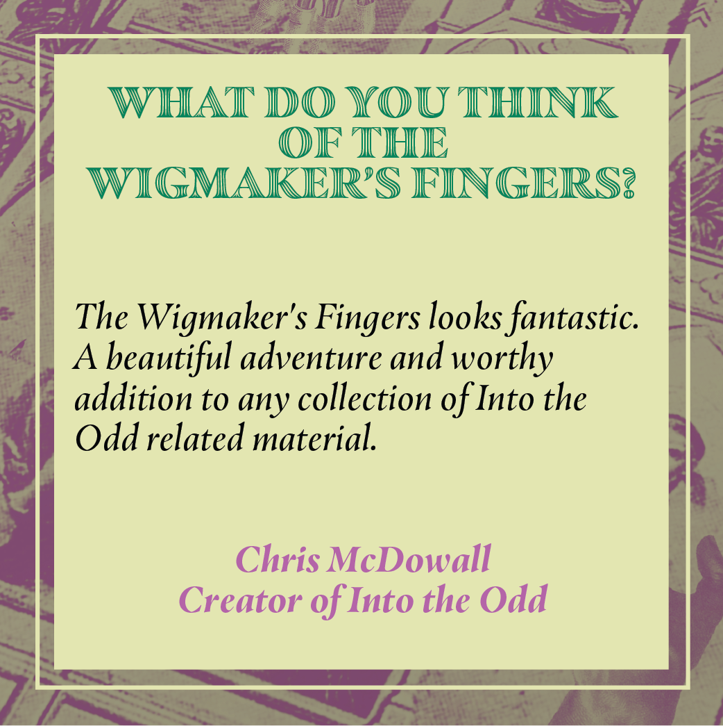 The Wigmaker's Fingers looks fantastic. A beautiful adventure and worthy addition to any collection of Into the Odd related material.