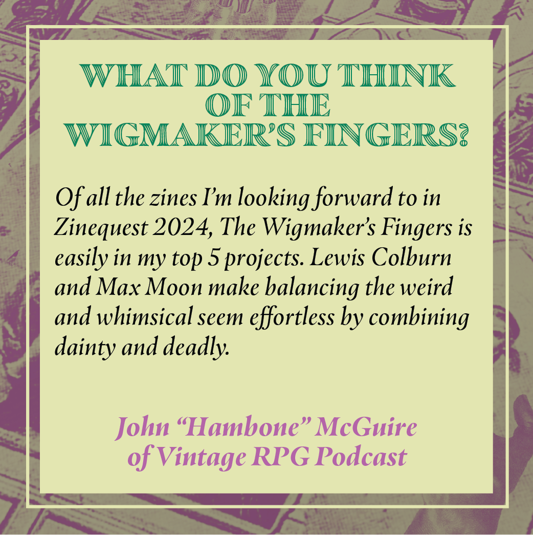 Bundle with Into the Odd Remastered! Use the coupon code WIGMAKERSODDITIES at checkout for 50% OFF WIGMAKER'S FINGERS when buying with Into the Odd.